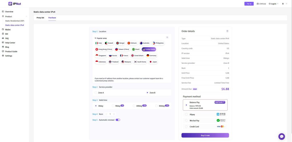 - Go to: Products → Static Datacenter Proxies-IPv4 → Purchase