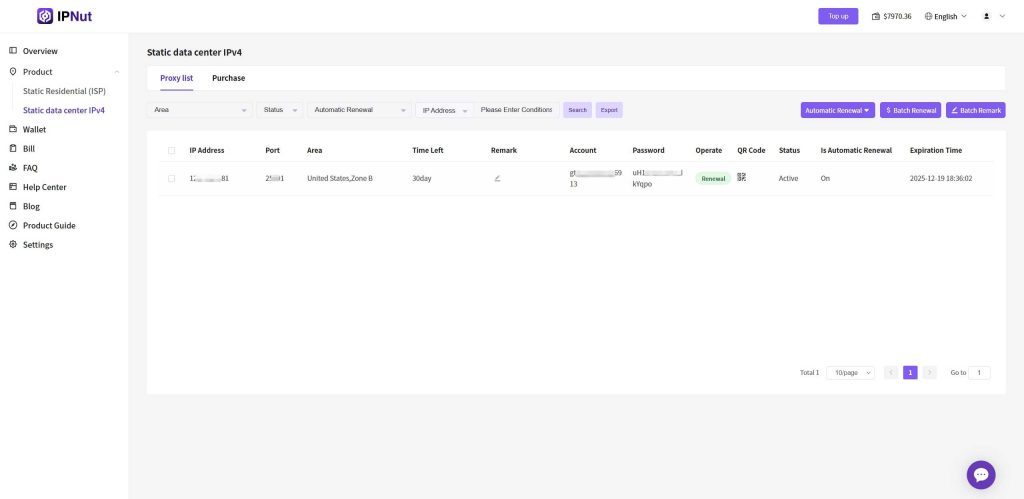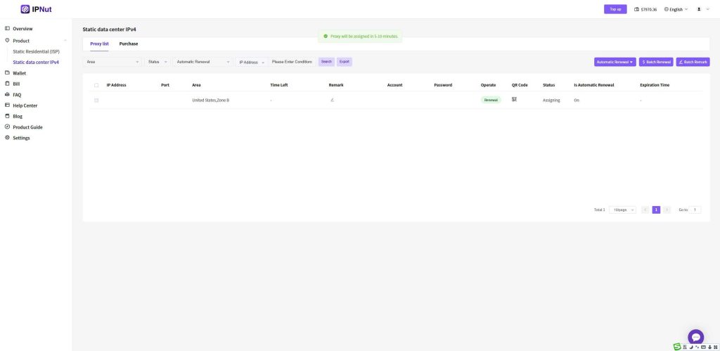 - Proxies are automatically deployed within 5-10 minutes after payment